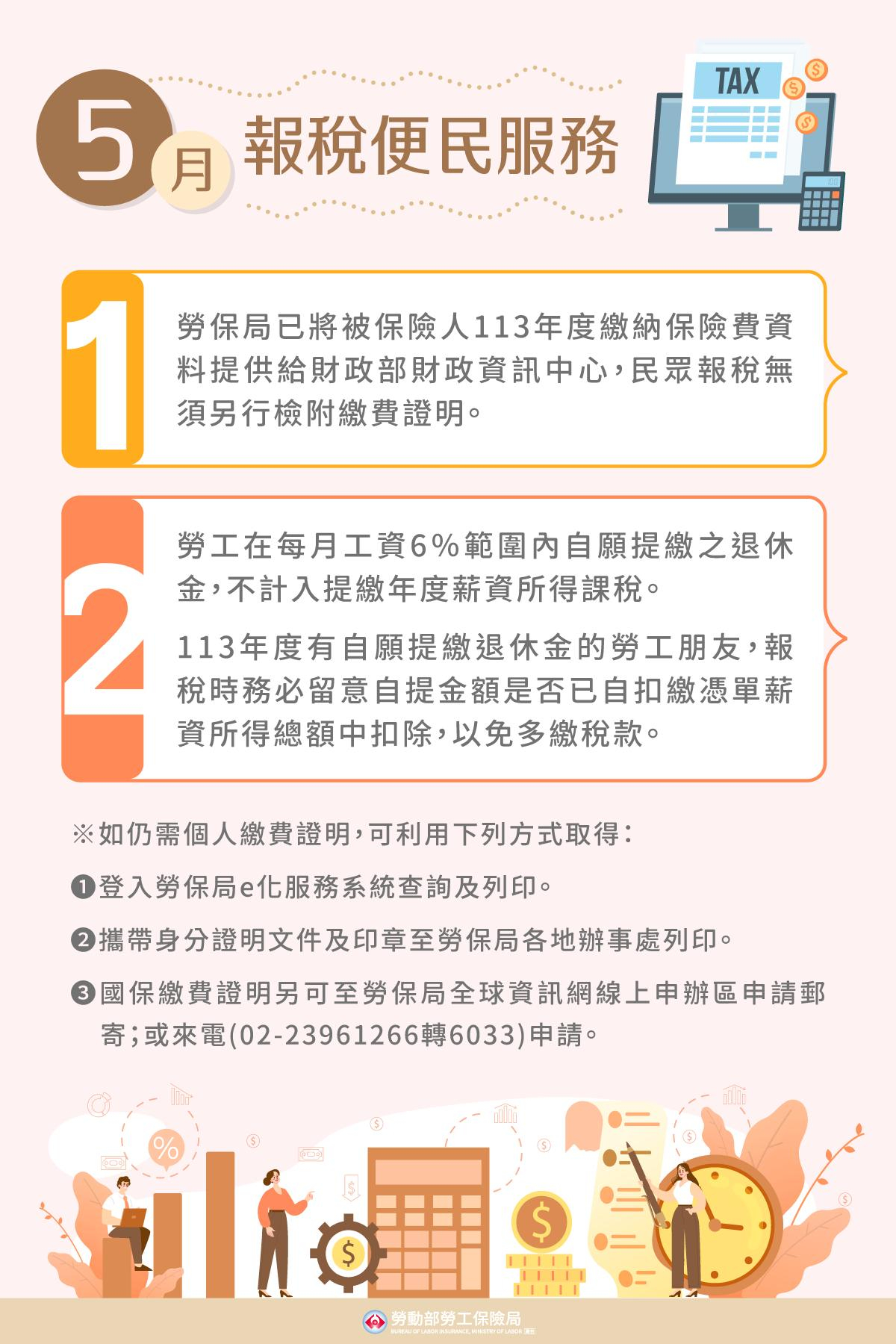 為簡政便民,勞保局已將被保險人113年度繳納保險費資料提供給財政部財政資訊中心,民眾報稅無須另行檢附繳費證明。
