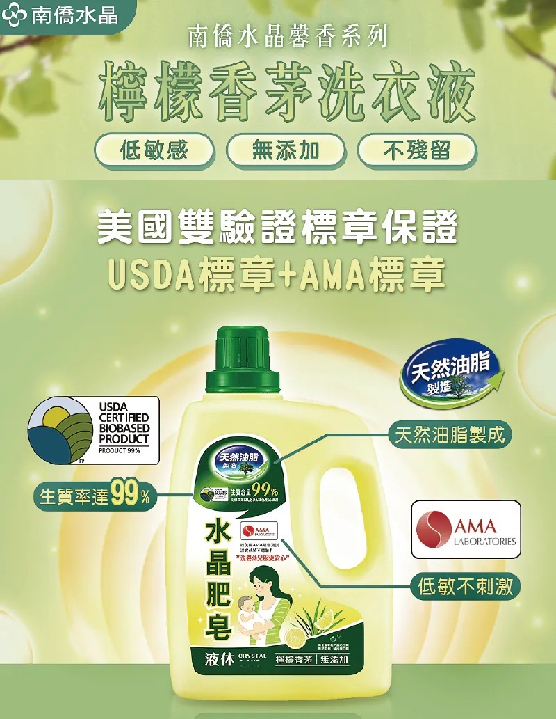 - 南僑水晶 - 檸檬香茅洗衣液體皂 1.2kg X 1瓶