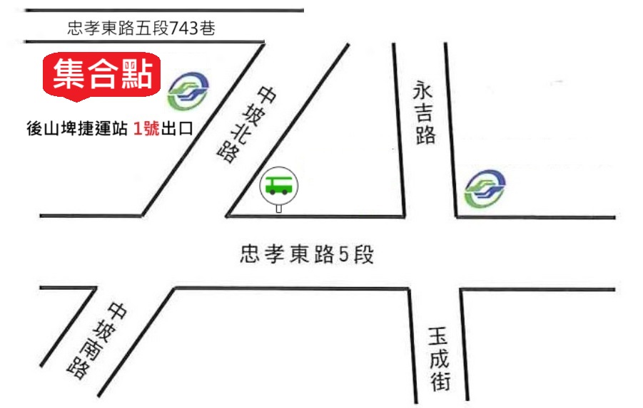 (遊覽車集合地點-台北捷運板南線-後山埤站1號出口)