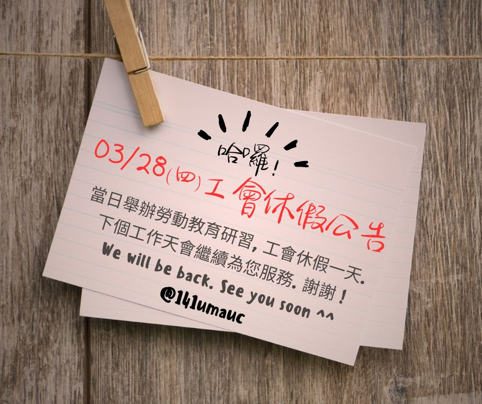 [公休公告]辦理勞動教育活動,03月28日公休一日。