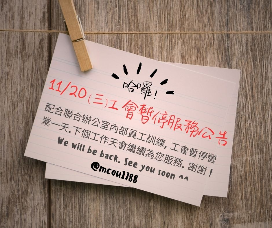 113/11/20工會內部員工訓練,暫停營業一日。