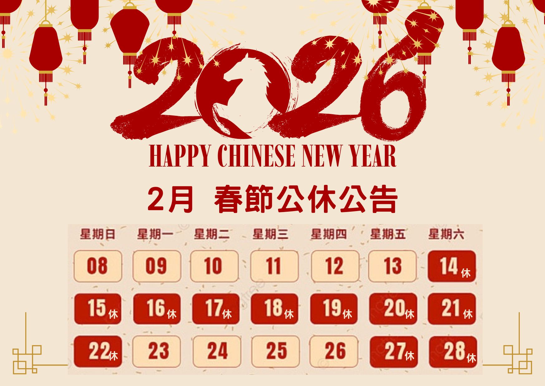 農曆春節工會公休公告。