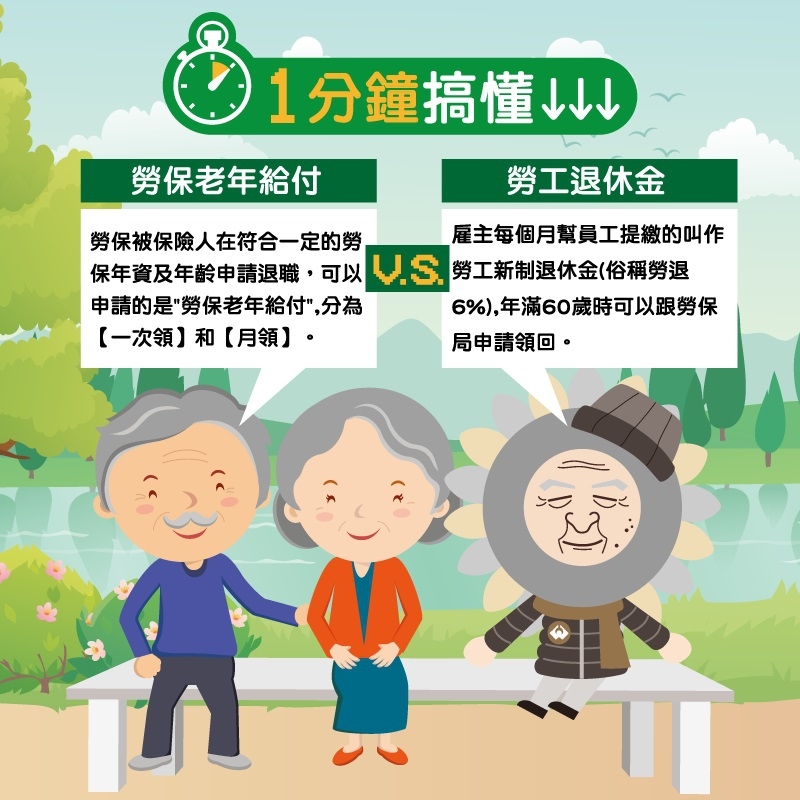 勞保年金給付 VS 勞工退休金~~大不同! (轉自勞工保險局臉書)